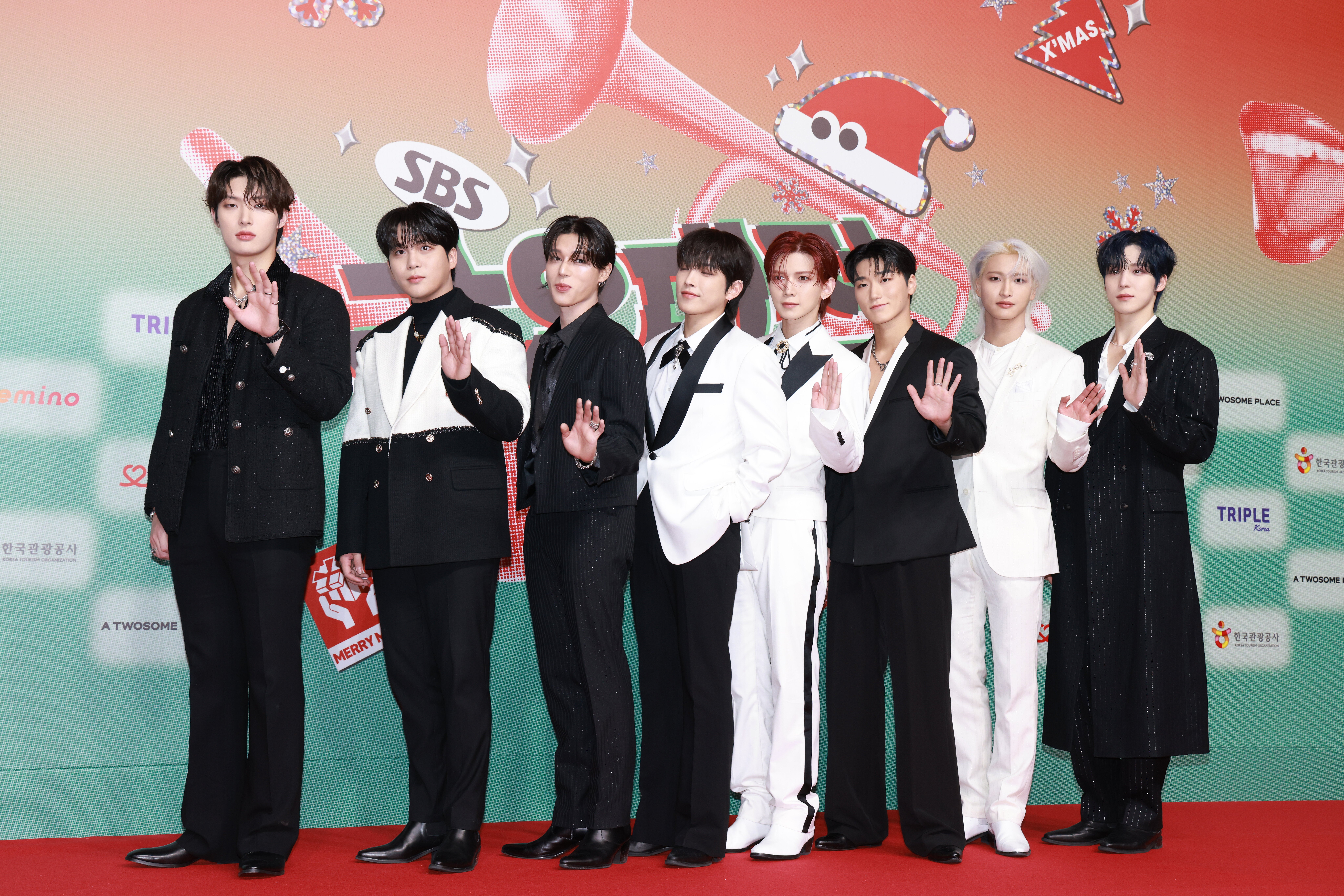 ピンク色の髪を長くおろし、スパンコールが散りばめられた白いドレスを纏ったパクさん。さらに白いジャケットを羽織った姿が印象的です。
