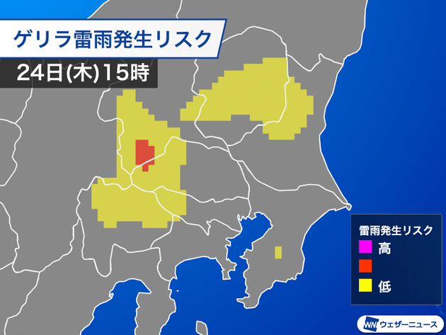 【24日の関東の天気】日差し戻るも注意。午後には内陸でゲリラ雷雨の恐れも
