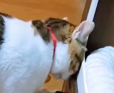 ごはん欲しさにスリスリしたところ捕まった猫⇒「ちぇっ…やるんじゃなかった…」という表情に8.6万「いいね」