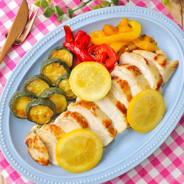 鶏むね肉にズッキーニ、パプリカ、レモン、オリーブオイル、にんにくを合わせて下味冷凍!あとは焼くだけで、レモンのさっぱり感とにんにくの香ばしさがジュワっと広がる、夏にぴったりのおかずが完成します!彩りもきれいで、食卓がパッと明るくなるのもうれしい!さっぱりしてるのにしっかり味で、食欲がない日でもペロッと食べられちゃう「鶏むね肉と夏野菜のオイル焼き」のレシピです。