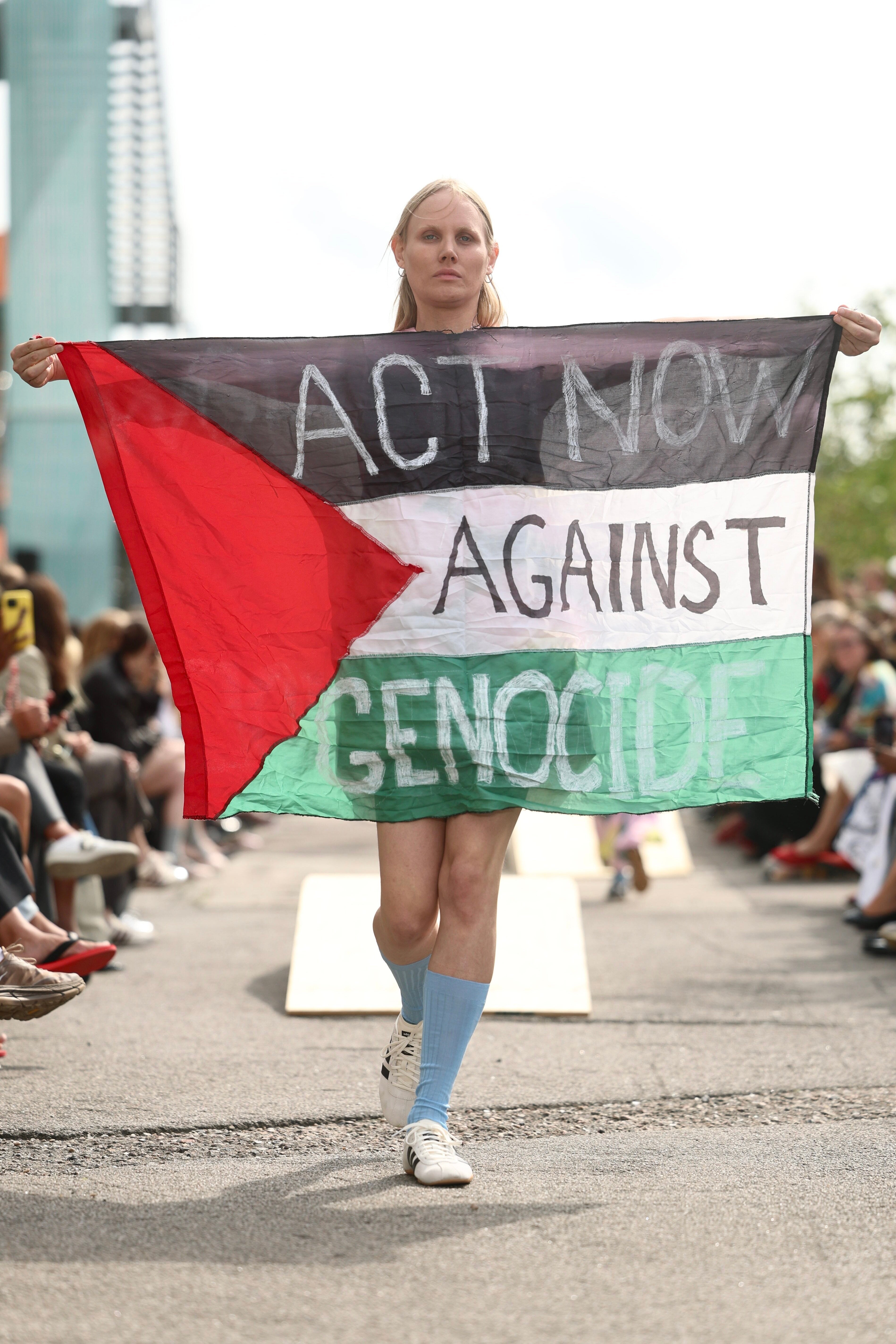 「パレスチナなしに私たちの未来はない」マリメッコのショーでモデルがジェノサイドに抗議