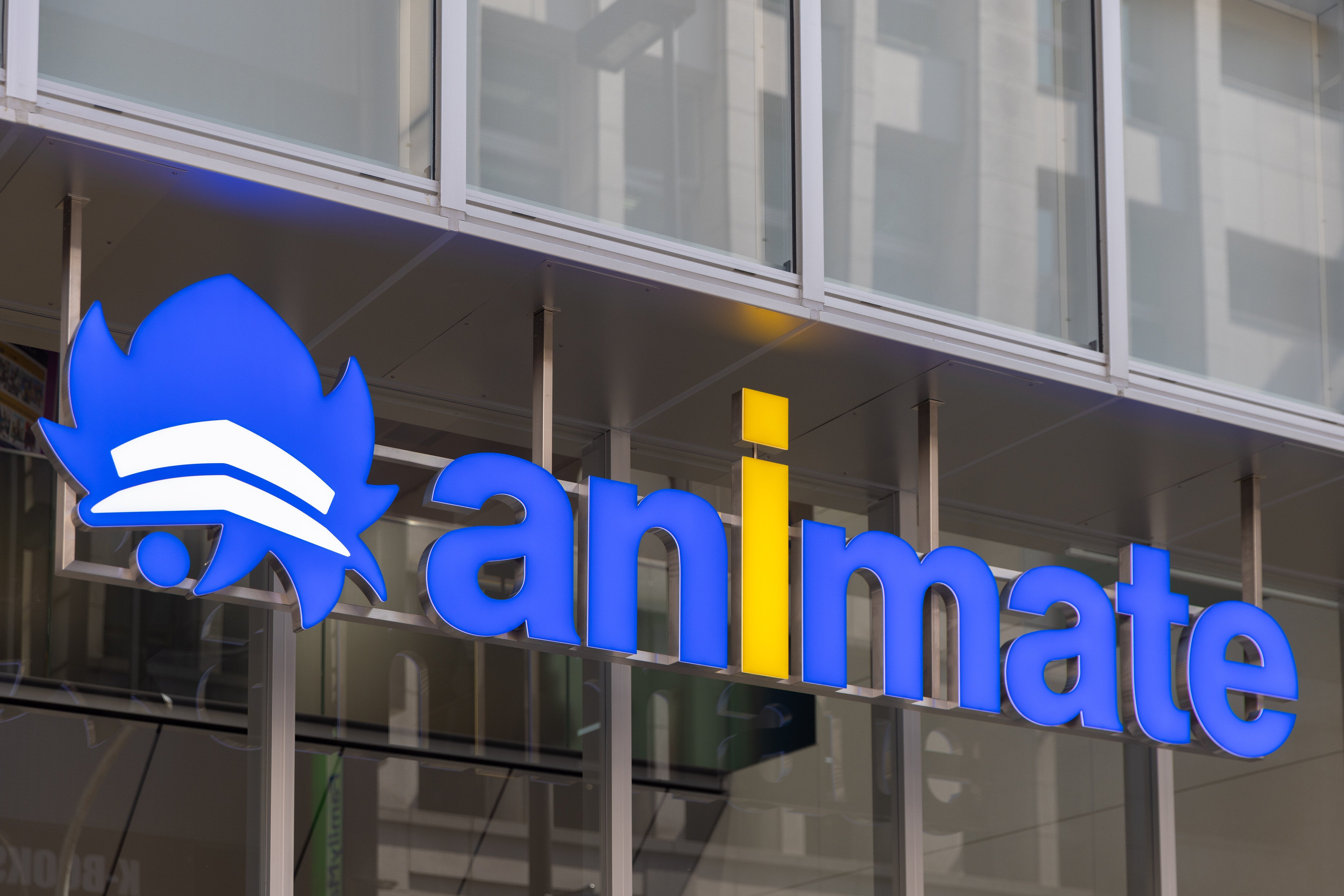 看板は、アニメイトのロゴがオレンジ色に変更されており、「animate」の「i」の部分が刀の形になっています。また、文字の左側には『劇場版「鬼滅の刃」無限城編』のロゴが配置されています。