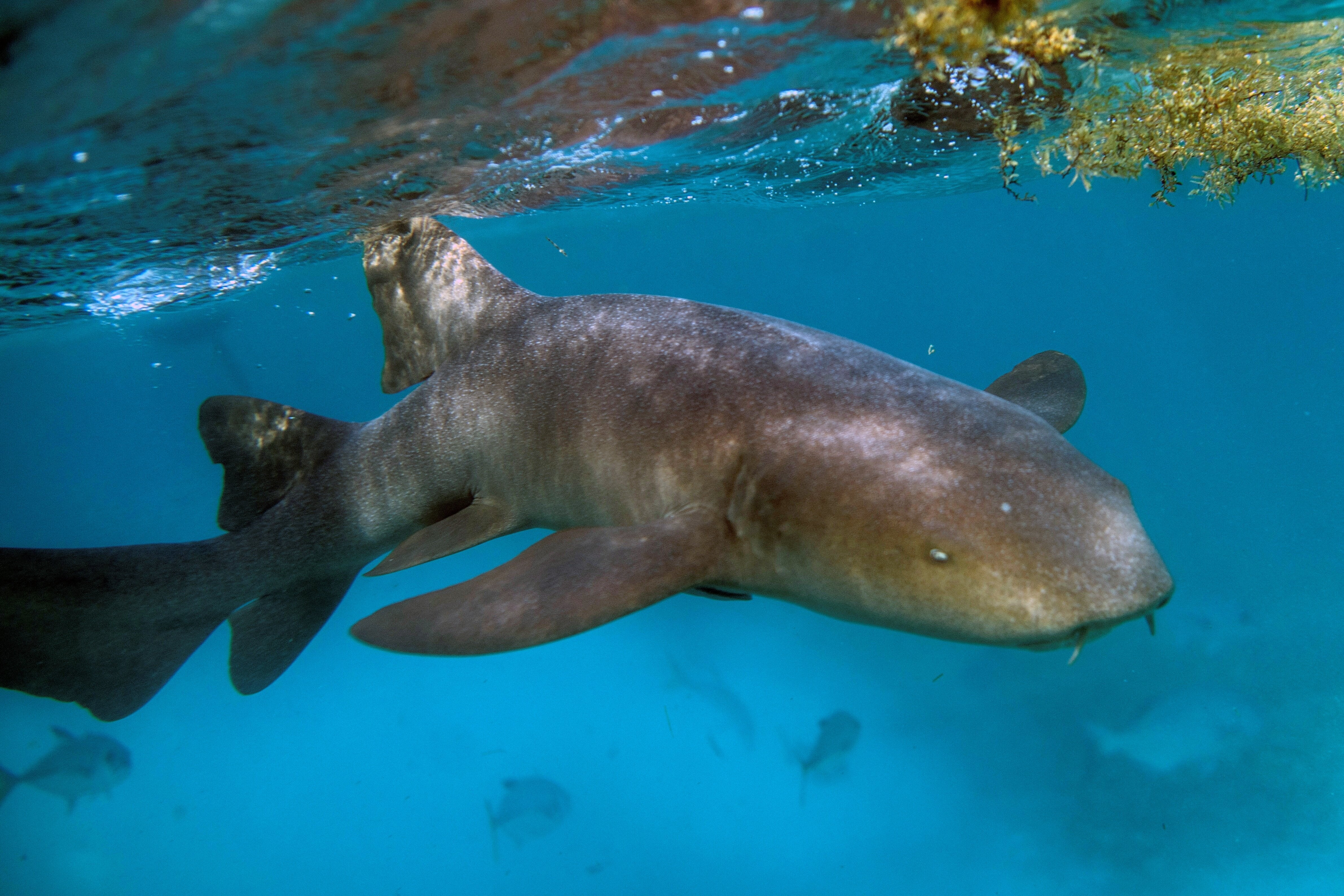 通常ナースシャークは茶褐色の体色で、岩場やサンゴ礁に溶け込みながら狩りを行うが、このような鮮やかなオレンジ色では目立ってしまい狩りが困難になると考えられる。