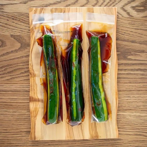 ポリポリ食感がクセになる、にんにく香るきゅうりの浅漬け♡調味液をちゃちゃっと混ぜて、きゅうりと一緒に”ある物”に入れるだけ!この方法だとしっかり均等に漬けられるから、味しみバッチリですよ◎
