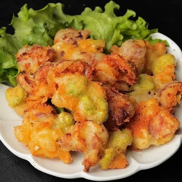 思いつきで作ってみたらうますぎて笑いが止まりませんでした。チーズのおかげで塩いらず!スプーンですくって油の中に投入するだけで超簡単。ちくわとそら豆の簡単チーズかき揚げです。