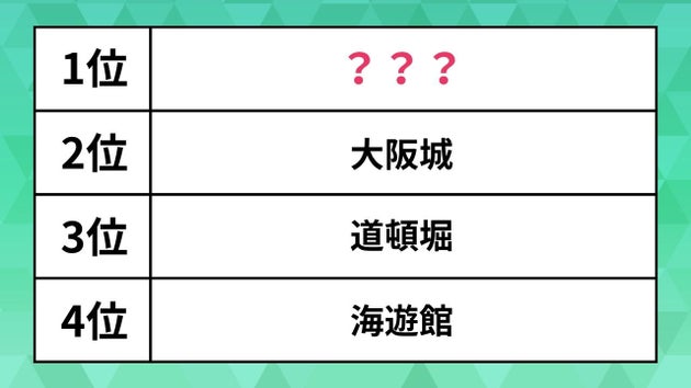 大阪の人気「観光地」ランキング。大阪城や道頓堀を抑えた1位が納得だった
