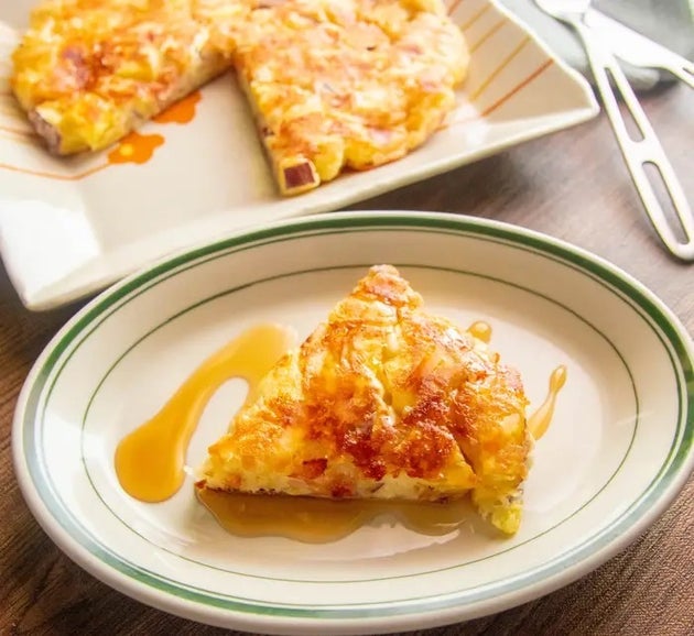 「さつまいもとベーコンの塩チーズおやき」は、甘じょっぱさがクセになる一枚。ホットケーキミックスのやさしい甘みと、ベーコンやチーズの塩気が絶妙に合わさります。さつまいものほくほく感も加わり、食べ応えもしっかり。休日の朝や小腹が空いたときに、気軽に作れるのもうれしいところです。お子さまから大人までハマる味わいで、メープルシロップをかければスイーツ感覚でも楽しめますよ♪
