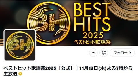 番組公式は放送が始まる5時間前に「ベストヒット歌謡祭の裏側をお届け🎵」と投稿。