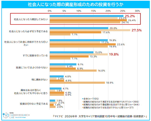 【調査概要】「マイナビ 2026年卒 大学生キャリア意向調査10月中旬<就職後の副業・投資意欲>」