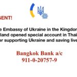 タイのウクライナ大使館、寄付受付の銀行口座を開設 #StandwithUkraine