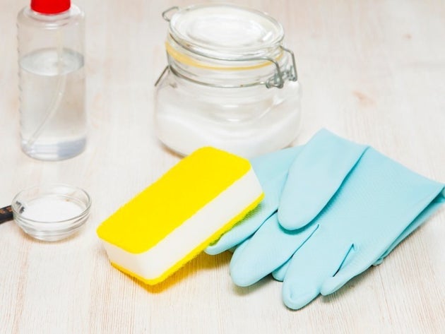 酢、水、重曹、消毒用エタノール、スプレーボトル、雑巾など
