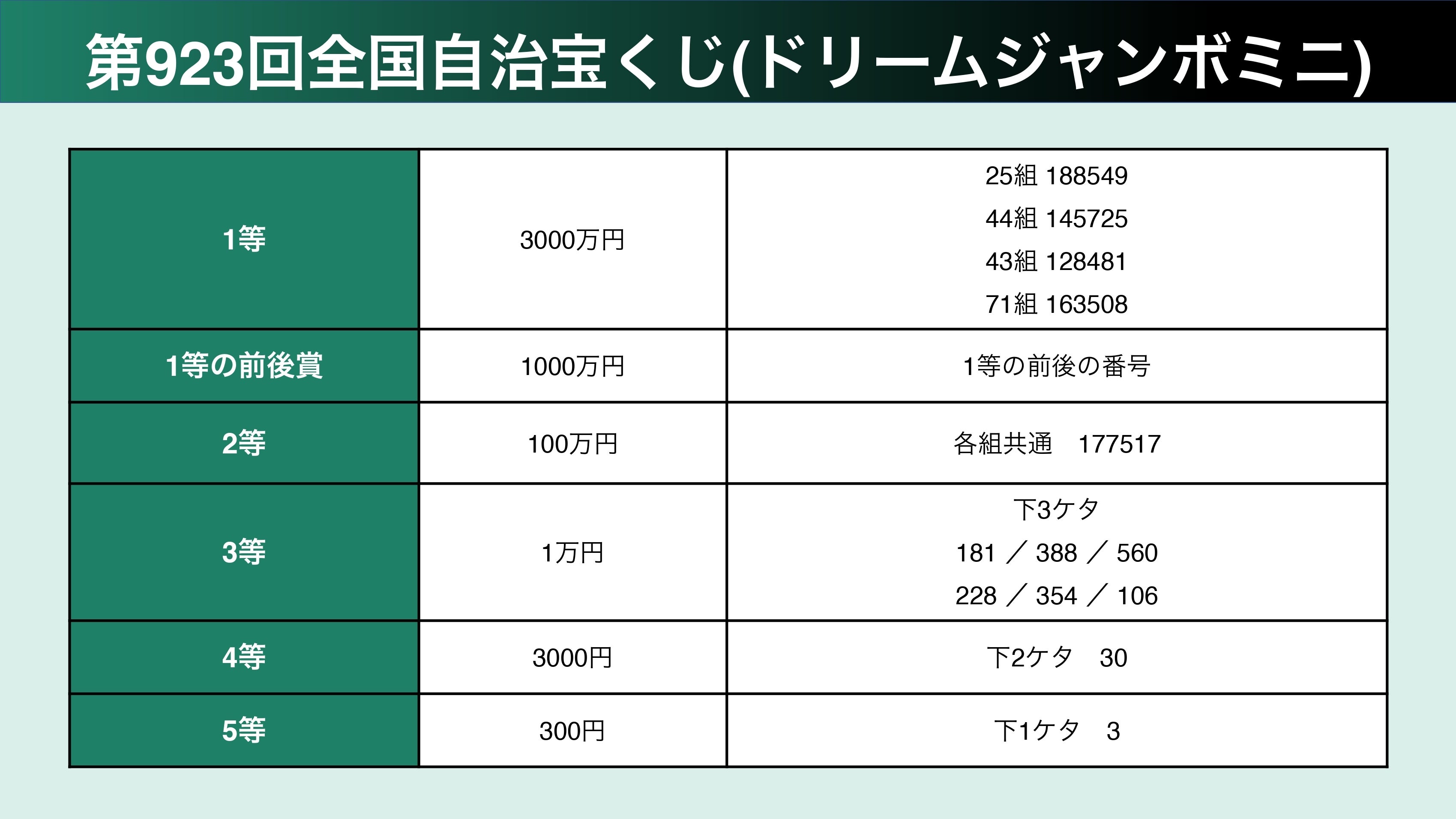 ドリームジャンボ宝くじ(第922回全国自治宝くじ)の抽選が6月13日、宝塚大劇場(兵庫県)で行われ、当選番号が決まった。当選金額は1等と前後賞を合わせると5億円。支払期間は2022年6月17日から23年6月16日まで。