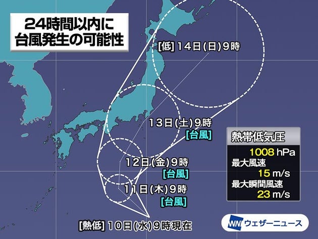 「台風8号」発生の可能性。 お盆休みの8月13日ごろ、東日本に接近か