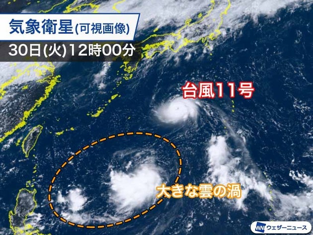 ただ、沖縄の南には、「モンスーンジャイア」と呼ばれる大きな雲の渦があります。台風11号が沖縄方面に進むにつれて、この雲とまとまり、勢力を強めるとともに大型化する見通しです。